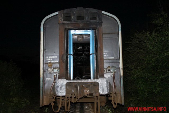 По прибуттю до місця виклику першого підрозділу було встановлено, що загорання виникло в машинному відділенні приміського потягу сполученням Вінниця - Христинівка, внаслідок чого згорів один вагон (комбінований з машинним відділенням) та горить другий.