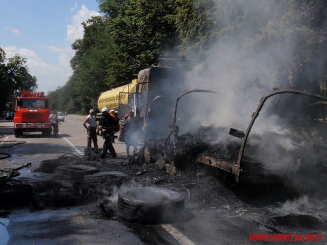 22 липня о 12:28 рятувальників повідомили про те, що між селами Громадське та Радянське Вінницької області на автошляху Львів-Кіровоград-Знам'янка сталося загорання вантажного автомобіля з причепом.