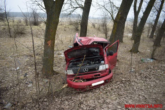 «За попередньою інформацією автомобіль «Мерседес», за кермом якого був житель Чернівецької області 1947 року народження не впорався з керуванням і допустив зіткнення з деревом. В наслідок ДТП пасажир цього автомобіля 1981 року народження помер на місці пригоди. Ще один пасажир, 1991 року народження та водій госпіталізовані до хмільницької лікарні», - повідомили в поліції.