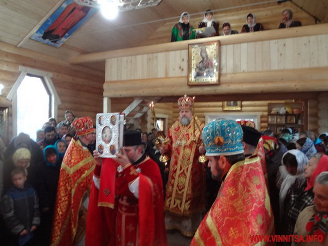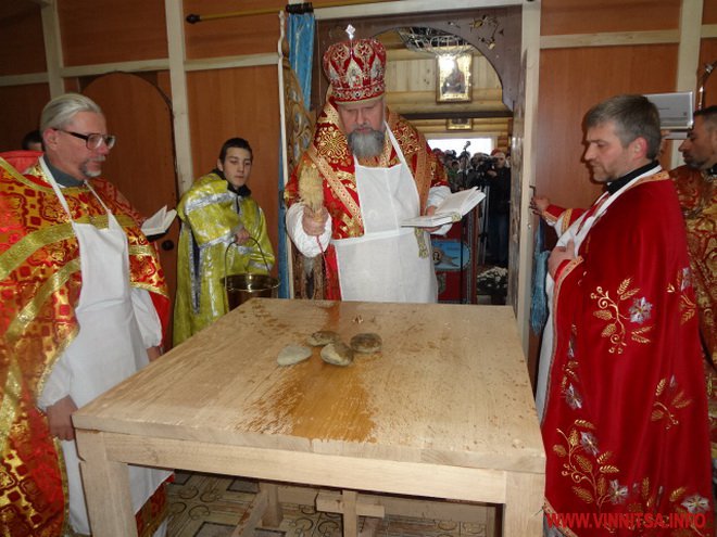 У храмі настоятель парафії Ростислав Процанін, подаючи хрест своєму архіпастирю, запросив його освятити престол та новозбудований храм і звершити першу Божественну Літургію.