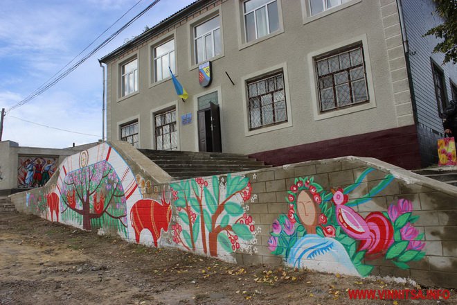 Цьогоріч пензлі митці дійшли і головної будівлі Гонтівки – сільської ради. Її майстри обмалювали зображеннями історичних подій України, народними символами, фігурою дерева роду, птахами й тваринами.