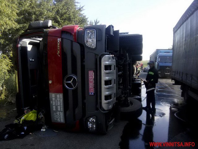 21 червня близько 18 години на автошляху Вінниця - Турбів поблизу с. Куна Гайсинського району перекинувся вантажний автомобіль «Мерседес».