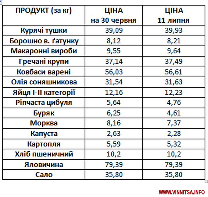 Подорожчали майже на гривню курячі тушки, на півгривні подорожчали варені ковбаси, на 9 копійок подорожчало борошно, макаронні вироби та олія, продовжують тенденцію росту в ціні гречані групи, тепер вартість за кілограм збільшилась на 30 копійок.