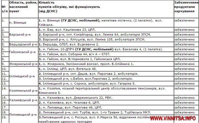 Станом на 8 січня на території Вінницької області функціонує 123 пункти обігріву, які забезпечені продуктами харчування.