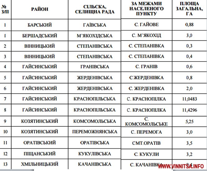 На Вінниччині 13 водних об’єктів готові здати в оренду для рибогосподарських потреб. Площа найменшого – 0,3 гектара (у Вінницькому районі), найбільшого – 11,4 гектара (в Гайсинському районі).