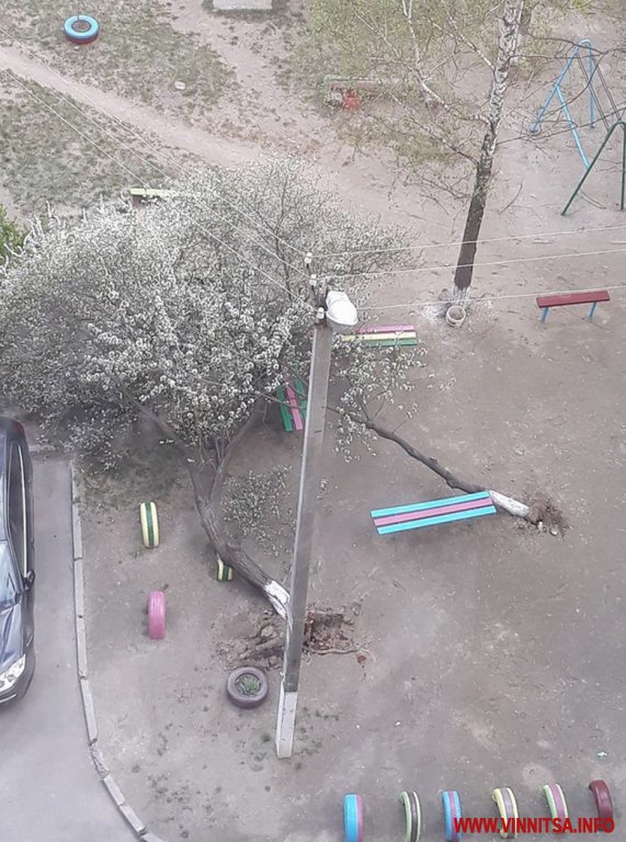 У ніч з 19 на 20 квітня у зв’язку з погіршенням погодних умов у Вінниці та області сильні пориви вітру повалили близько двох десятків дерев.
