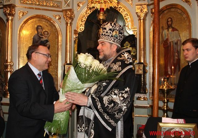 Голова облдержадміністрації Валерій Коровій зачитав прихожанам храму текст розпорядження та вручив пакет документів, які засвідчують право власності релігійної громади на храмову споруду, націоналізовану в роки радянської влади , настоятелю Свято-Троїцького храму Вінницької єпархії української православної церкви митрофорному протоієрею Василю Солодчуку.