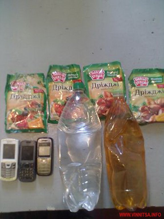 Проведені заходи, на жаль, позитивних результатів не дали, а зловмисник втік з місця події. Під час огляду місця події було виявлено ряд заборонених предметів, а саме: три мобільні телефони, чотири пачки дріжджів та 3 літри спиртовмісткої речовини.