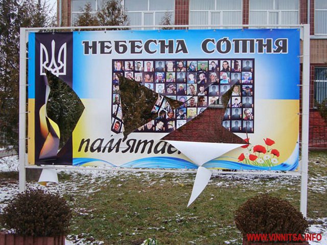 У Літині, що на Вінниччині міліція розшукує зловмисника, який понівечив банер, встановлений у райцентрі в пам'ять загиблим героям Небесної Сотні.