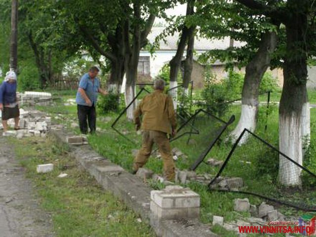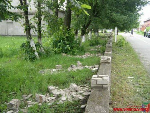 На Вінниччині в місті Козятин біля школи № 3 невідомі зруйнували 80-метровий паркан. Міський голова обіцяє 2 тисячі гривень за інформацію про зловмисників.
