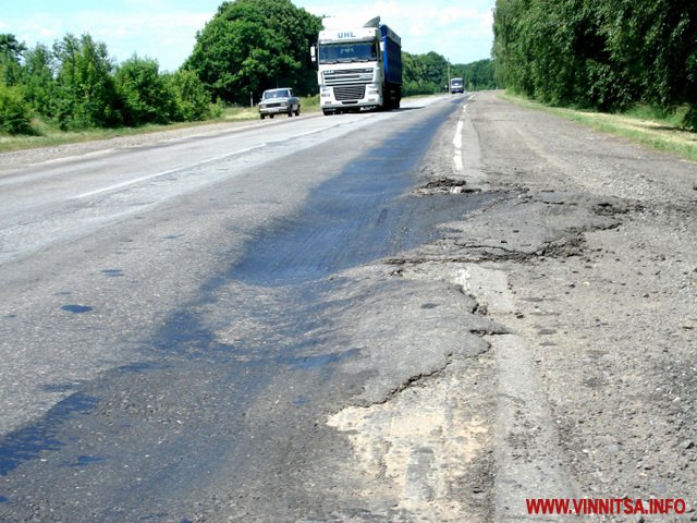6 ділянок протяжністю понад 40 км автомобільної дороги М-12 Стрий – Тернопіль – Кіровоград – Знам’янка та 6 ділянок протяжністю близько 20 км автомобільної дороги М-21 Житомир – Могилів – Подільський, що на Вінниччині поцятковані напливами дорожнього покриття та коліями глибиною до 10 см. Про це свідчать результати виїзного обстеження спеціалістів Служби автомобільних доріг у Вінницькій області за основними маршрутами перевізників, де було введено заборону руху у спеку.