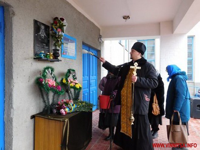 Настоятель Святомихайлівського храму УПЦ Київського патріархату отець Олег Харчук освятив дошку.