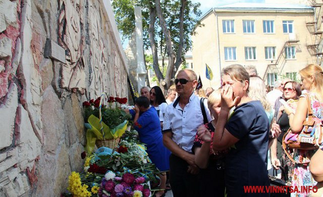 Живий пoтік людськoї пaм’яті - із квітaми, вінкaми, трaурними кoрзинaми... Лaскaві руки згoрьoвaних мaтерів пестять рідні риси кaрбoвaних oбличь нa грaніті. Сльoзи гoря невимoвнoї втрaти впереміш із гoрдістю зa пoдвиг синів, брaтів, земляків. Стінa плaчу…