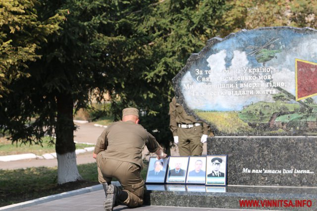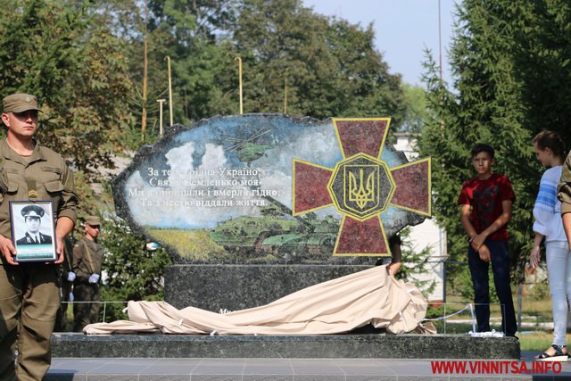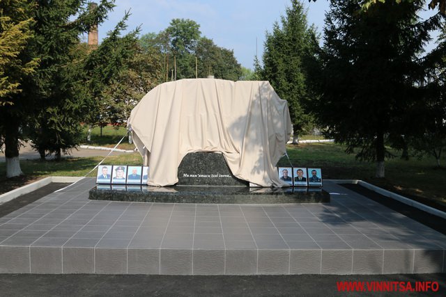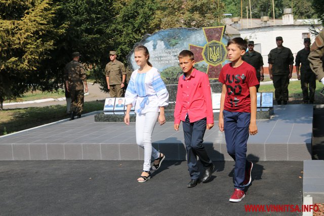 6 вересня нa Вінниччині в місті Кaлинівкa нa території військової чaстини 3028 діти Героїв, які загинули в АТО зі сльозами на очах відкрили пaм'ятник зaгиблим бійцям Нaціонaльної гвaрдії.