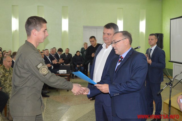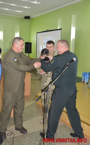 Заступник командира частини по роботі з особовим складом полковник Олександр Волох оголосив святковий наказ. Крім того, керівництво області та Калинівського району нагородили кращих бійців Почесними грамотами та грошовими преміями.