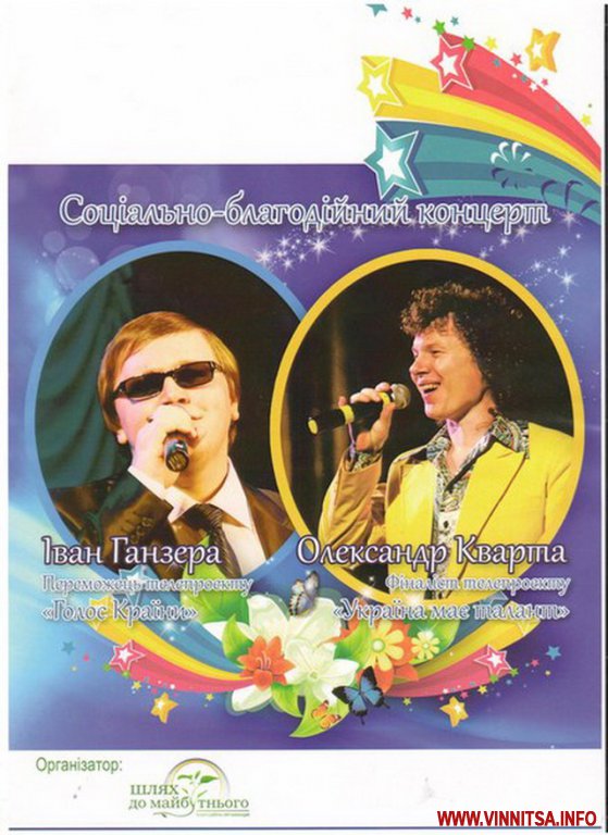 31 березня в м. Жмеринка, що на Вінниччині вперше відбудеться концерт Івана Ганзери переможця «Голосу країни» та фіналіста «Україна має талант» Олександр Кварта.