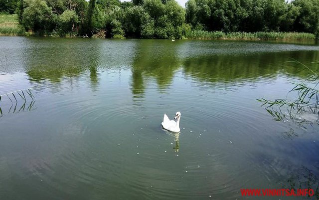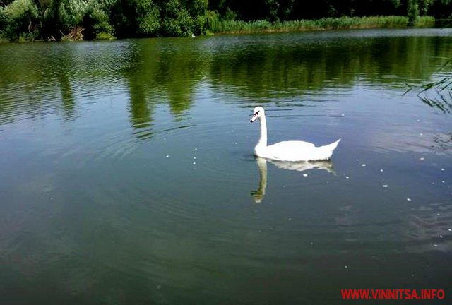 В селі Шиманівка, що у Теплицькому районі, люди врятували від загибелі лебедятко, підгодували його і випустили на волю. Тепер вдячний птах щодня припливає до берега, аби підкріпитися (там для нього завжди стоїть пшениця), але вже не сам…