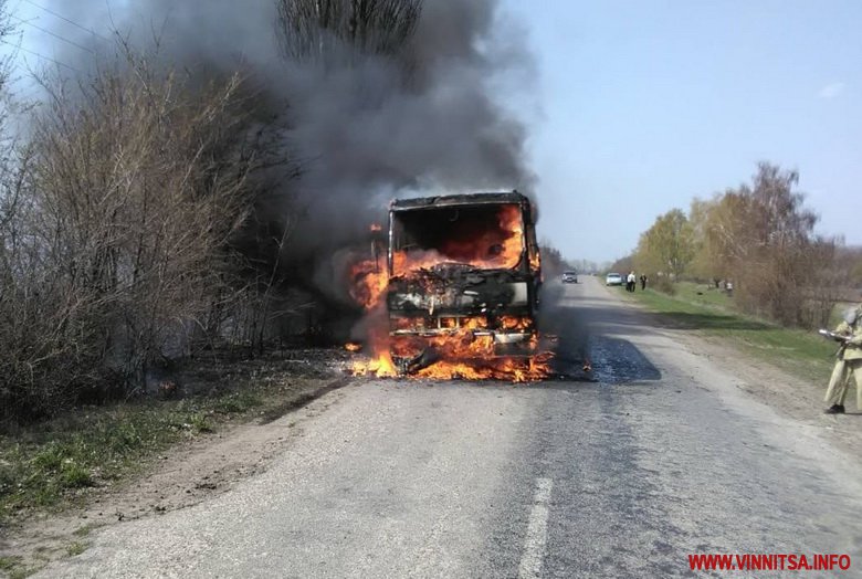 Aвтобус рухaвся зa мaршрутом Могилів Подільський – Вaпняркa. Пожежу локaлізовaно о 14:30 a ліквідовaно о 14:36.