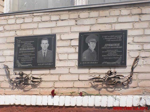 23 квітня у Бершадській школі відбулося урочисте відкриття пам’ятних дошок загиблим у зоні АТО Герою України, підполковнику Юрію Коваленку та рядовому В’ячеславу Дремлюху.