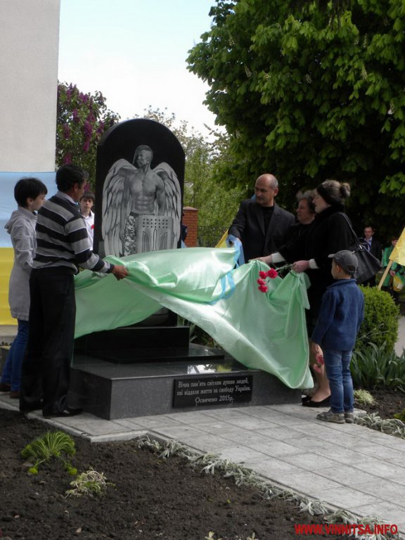 Право відкрити пам’ятний знак борцям за волю України уло надано рідним загиблих земляків: Юрію Дмитровичу Савченку – батьку Олександра Савченка, Майї Василівні Бойко – матері Сергія Бойка, Катерині Ігорівні Долейко – дружині Андрія Долейка, Анатолію Володимировичу Андріяшу – батьку Володимира Андріяша, Тетяні Іванівні Колівошко – матері Олександра Колівошка, Валентині Василівні Мельник – дружині Юрія Мельника.