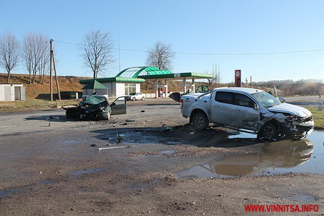 36-річний водій автомобіля «Ford Ranger», житель Гайсинського району, поблизу перехрестя з автодорогою до села Комарів виїхав на смугу зустрічного руху, де допустив зіткнення з автомобілем «Rover».