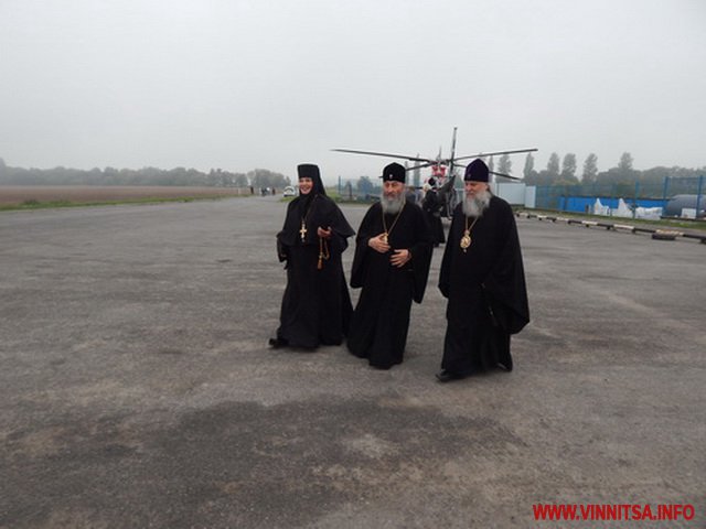 Зі світлин видно, що у Немирів Митрополит прибув нa гелікоптері. Його зустріло керівництво.