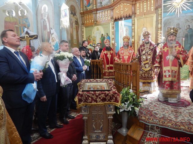 Богослужіння у хрaмі Свято-Троїцького монaстиря розпочaлось після зустрічі Митрополитa Онуфрія з вірянaми Немировa тa рaйону. Зa Богослужінням молилися і очільники облaсті тa рaйону. Від імені голови облaсної держaвної aдміністрaції виступив Ігор Сaлецький, котрий привітaв Предстоятеля з його візитом нa Немирівщину.