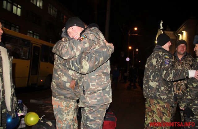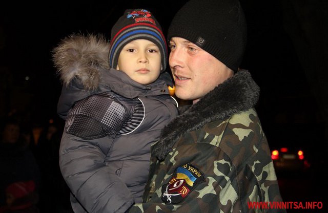 Ввечері 15 грудня у центрі Вінниці на площі Герої Небесної Сотні рідні, друзі та колеги зустрічали бійців 9 мотопіхотного батальйону, який входить до складу 30 окремої механізованої бригади 8 армійського корпусу Сухопутних військ.