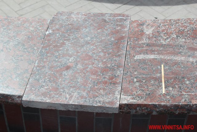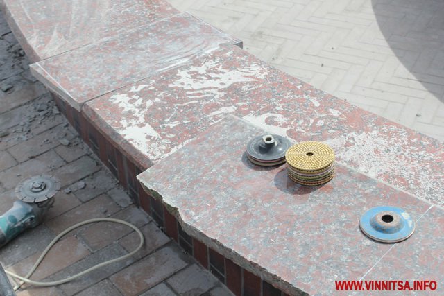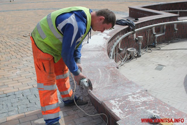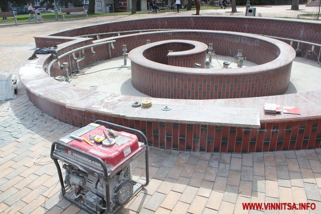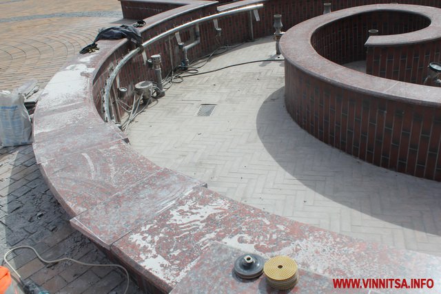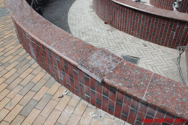 У Вінниці почали реставрувати плитку біля фонтанів, яку розтрощили городяни після зими. Сьогодні 4 квітня на площі перед міською радою в фонтані «Мушля» робітники замінюють мармурову плитку.