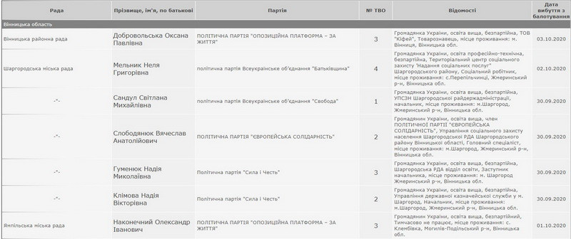Станом на 12 жовтня, менше як за два тижні до виборів, на Вінниччині 7 кандидатів вибули з балотування. П’ятеро з них – до Шаргородської міської ради.