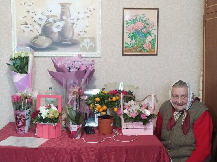 Ще одна 90-річна ювілярка, Ніна Кіндратіївна, щоденно спускається та підіймається на п’ятий поверх, аби прогулятися. Про це вона розповіла гостям з міськради, які прибули привітати її. А ще, досі вишиває бісером картини та ікони. Та готує смачні страви для всієї родини.