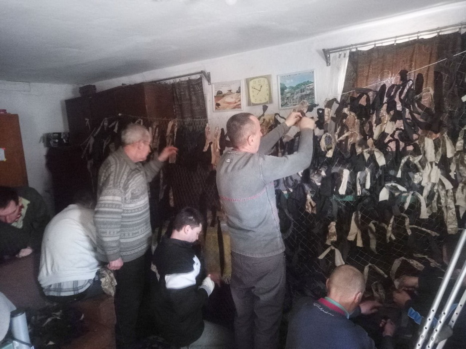 В одному з містечок на Вінниччині, до оборони своєї громади долучились місцеві безхатьки. У соціальному центрі реабілітації та допомоги для осіб без місця проживання, вони плетуть маскувальні сітки. Їх віддають до тамтешньої ТРО.