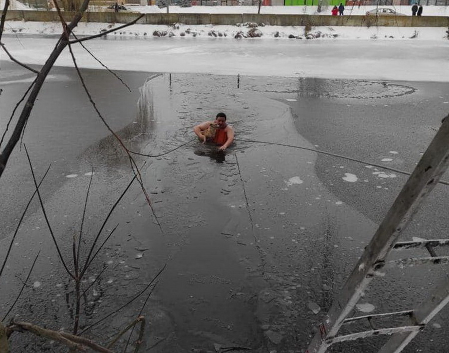На Вінниччині бійці ДСНС врятували собаку, який провалився в крижану воду в ставку м. Козятин.