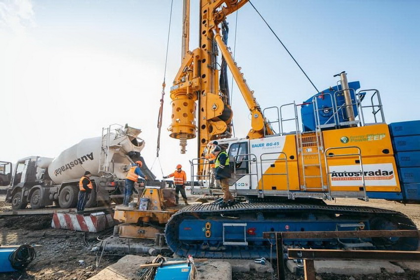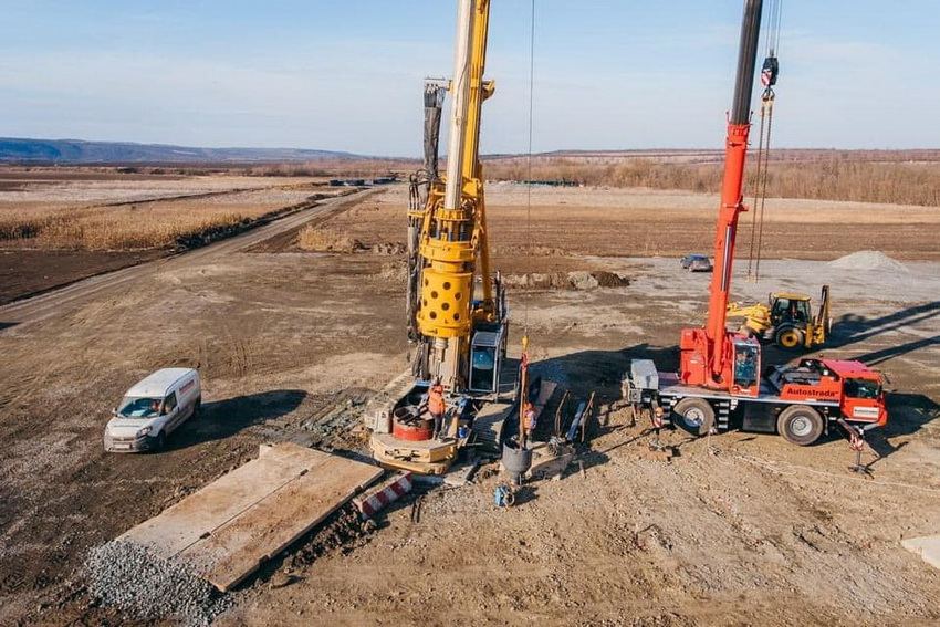 Роботи на об’єкті ведуться у цілодобовому режимі. Вже пробурено та забетоновано 12 паль, які будуть фундаментом майбутніх опор мосту (на одну опору потрібно 15 паль). Буріння проводиться за допомогою спеціалізованого устаткування, яке може працювати з найскладнішими ґрунтами. Йдеться про дві новітні потужні бурові установки Bauer із глибиною буріння до 50 метрів.