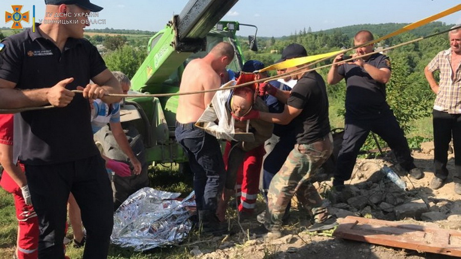 чоловік, якого три дні тому засипало камінням під час чистки криниці.