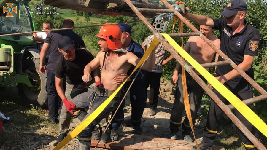 На допомогу викликали бригаду медиків та місцевий підрозділ рятувальників, а згодом і черговий караул з м.Могилів-Подільський та оперативну групу ГУ ДСНС України у Вінницькій області. Однак, дістатися до чоловіка було вкрай важко, оскільки він знаходився під завалом на глибині 9 метрів. Рятувальники по черзі спускалися, обережно розчищали та підіймати каміння з криниці, під яким знаходився чоловік. Рятувальники за допомогою спеціального обладнання змогли розкопати чоловіка, а згодом постраждалого передали працівникам екстреної медичної допомоги.