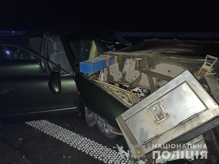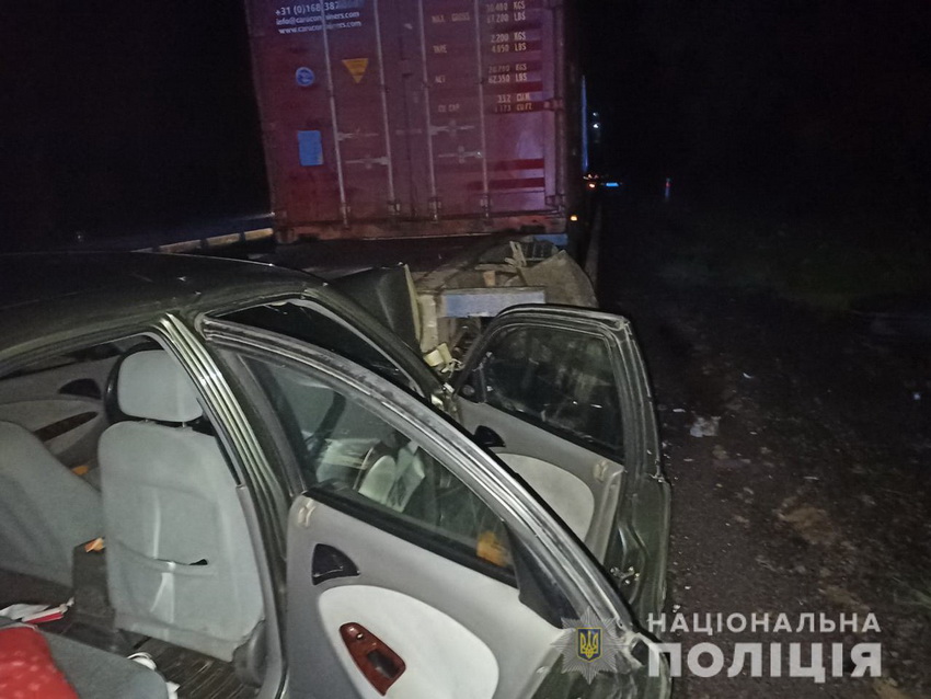 «48-річний кермувальник Daewoo, не вибравши безпечної швидкості руху та, не впоравшись з керуванням, допустив зіткнення з вантажівкою Renault Magnumз причепом, яка була запаркована на узбіччі дороги з увімкненими аварійними сигналами. Пасажирка іномарки Daewoo отримала тілесні ушкодження та госпіталізована до лікарні», - коментують правоохоронці.