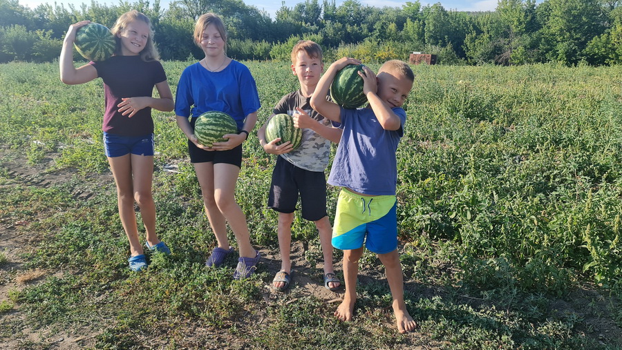 На Вінниччині Андрій Федик з села Велика Кісниця дев’ять років поспіль займається вирощуванням кавунів та ягід. Він батько трьох дітей. Наймолодшому синові шість років. Каже, всі активно допомагали зібрати урожай і вирішили вторгувати кошти для воїнів.
