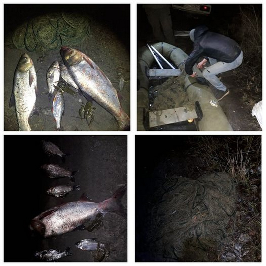 Близько 21 години вечора виявлено громадянина, який за допомогою гумового човна здійснював незаконне добування водних біоресурсів використовуючи зяброву сітку. Громадянин виловив: 3 екз. карася, 2 екз. товстолоба, 1 екз. ляща, та 2 екз. раки. Загальна вага незаконно добутих водних біоресурсів склала 2 кг. Збитки завдані рибному господарству становили 20 332 грн.