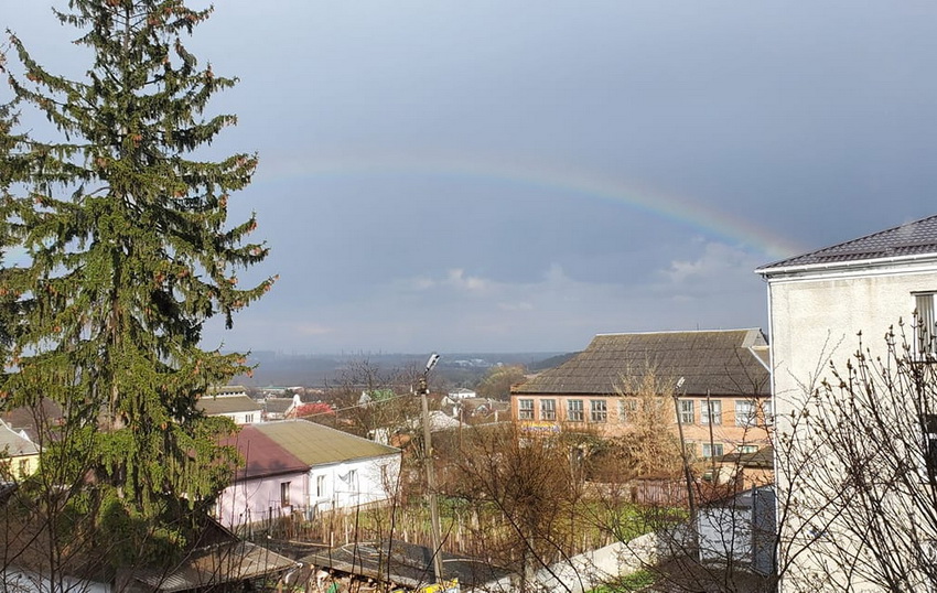 Протягом тижня у Вінниці та області весняна погода доволі мінлива. Яскраве сонце швидко прикривають хмари, за ними падає мілкий, або рясний дощ. Тож не дивно, що у різних містах нашого регіону з’являються перші веселки цього сезону.