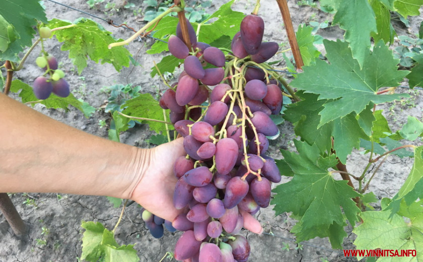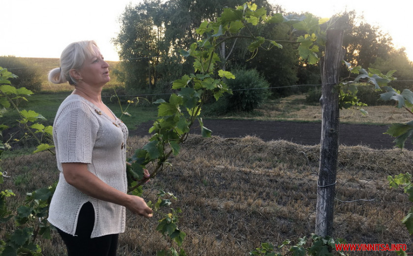 «Моя колекція винограду налічує 105 сортів. Ось тут в мене Слава Україні, гляньте, які великі грона, - проводить екскурсію кореспонденту Вінниця.info Оксана Деревіцька. Доглядати за виноградом потрібно ціле літо. Дивлюсь по погоді, якщо довго немає дощів поливаю. Також раз в два тижні роблю пасинкування: видаляю листя, які затіняють кисті з ягодами, зайві бруньки, пасинки, та вуса. А восени після збору урожаю, як тільки листя опало – я формую лозу на наступний рік. Зазвичай я намагаюсь не перевантажувати кущ, особливо, якщо йому лише 3 – 4 роки. Залишаю одну велику лозу вправо і вліво», – розповідає Оксана Деревіцька.