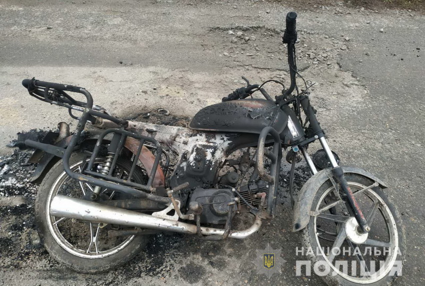 Як розповів заступник начальника Козятинського відділення поліції Дмитро Микитюк, під час відпрацювання населеного пункту поліцейські розшукали транспортний засіб. Мотоцикл знаходився на околиці села в обгорілому стані. Опитавши місцевих мешканців, працівники поліції встановили особу правопорушника. Ним виявився 18-річний місцевий житель.