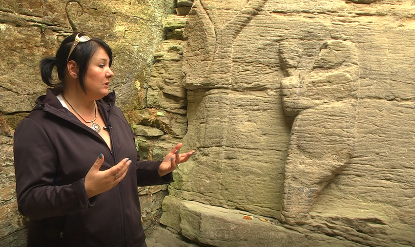 «Скелі там не прості. Це власне є сірий піщаник, єдина структура, яка не піддається радіо-вуглецевих аналізу. Цей піщаник силурійського періоду, якому 430 000 000 років», - зауважує Захарчук, вона заводить до храму, який за для безпеки від руйнування погодними умовами, вкрили дахом з напівпрозорого матеріалу.