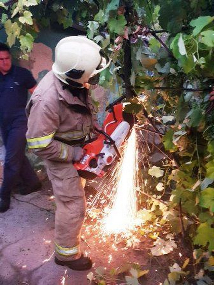 Прибувши на виклик, рятувальники ДПРЧ-12 провели роботи по розрізанню металевого паркану та вивільнили тварину.