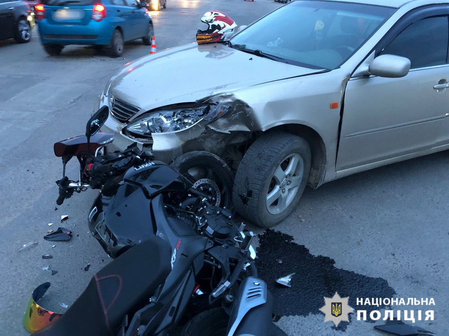 У результаті автопригоди неповнолітній кермувальник отримав тілесні ушкодження та госпіталізований до медичного закладу. 56–річний водій автомобіля Tayota Camry не постраждав.