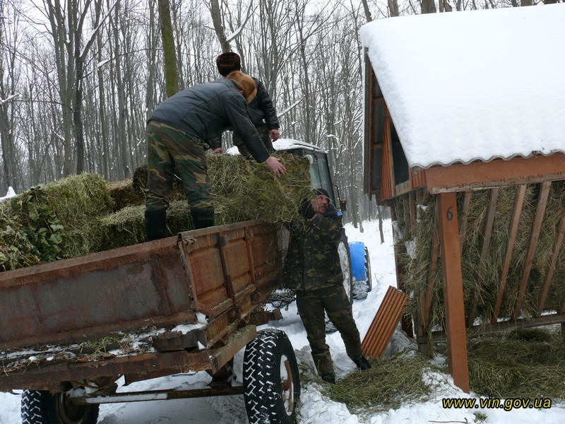 Влітку та восени лісівники Вінниччини активно готують кормову базу для підгодівлі диких тварин. Це в основному сіно, гіллячковий корм (висушені пучки листяних порід, а також малини і кропиви), зернові снопики, коренеплоди (буряк, морква), зерно пшениці, ячменю, вівса, кукурудзи. Частину «смаколиків» лісівники заготовляють власними силами, а частину – купують, приміром, сіль для солонців.