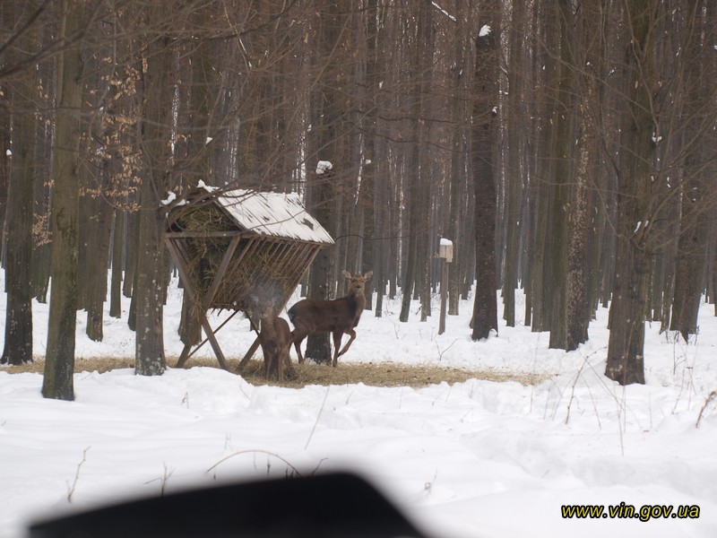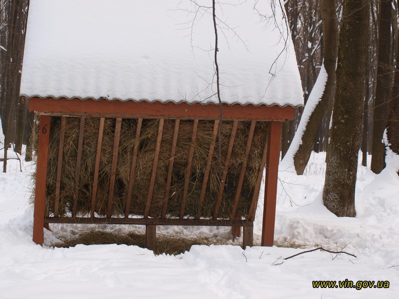 Цьогоріч для диких тварин працівники лісового господарства Вінниччини заготовили чималі запаси: більш як 200 тонн сіна, понад 100 тисяч штук гіллячкового корму, приблизно 200 тонн кукурудзи в качанах, 150 тонн зерна ячменю, вівса та зерновідходів, коренеплодів – майже 140 тонн, а для мешканців вольєрів – додатково гарбузи, жолуді, люцерну та силос.