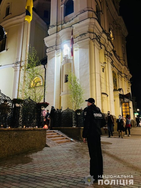 "У ніч з 1 на 2 травня на Вінниччині відбулося святкове богослужіння у 722 храмах. Поблизу усіх церков несли службу поліцейські, які стежили за правопорядком та дотриманням карантинних обмежень. Окрім того, правоохоронці проводили профілактичні бесіди з людьми про необхідність бути в масках у храмах та дотримуватися дистанції на прилеглій до церков території", - йдеться у повідомлені.