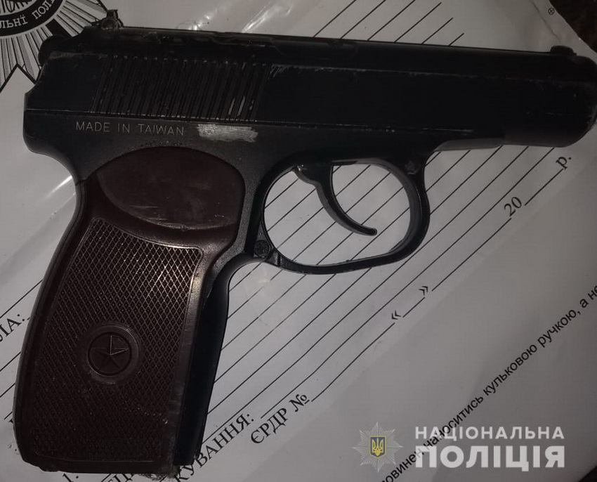 Після злочину правопорушник встиг заховати зброю, але згодом показав місце, де її заховав. Пістолет направили на експертизу.