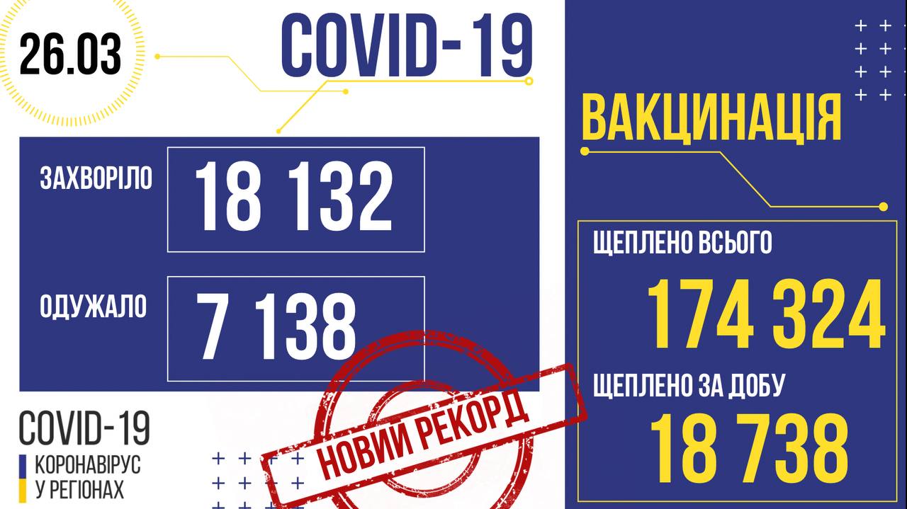 В Україні за минулу добу всього зафіксовано новий рекорд – 18 132 випадків інфікувань. Одужали минулої доби 7138 людини в Україні. Померли 326 осіб.